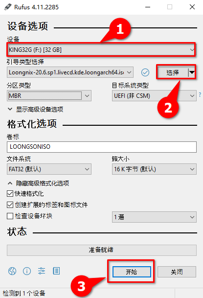3. 打开 rufus,选择设备,选择镜像,点击开始