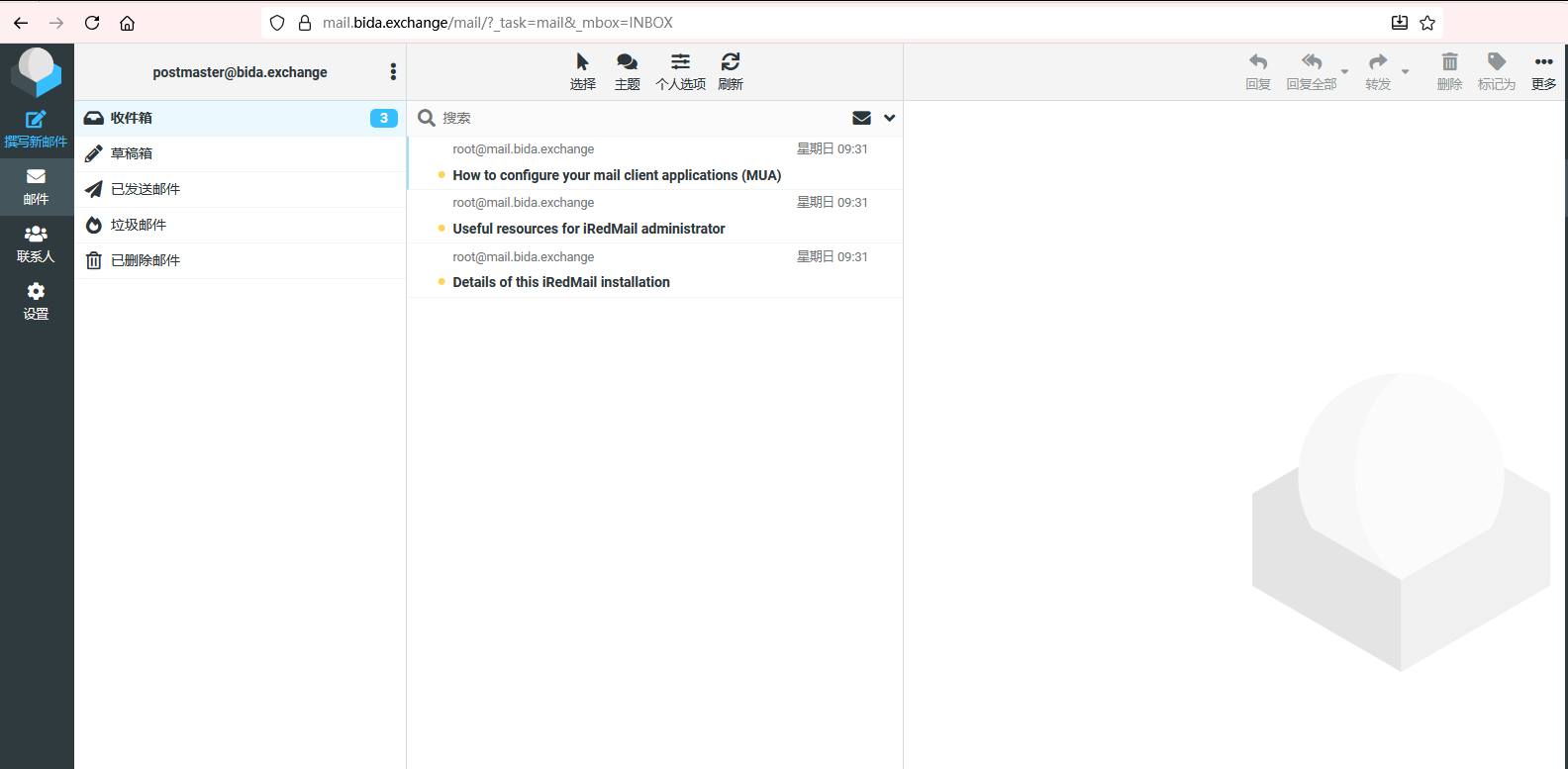然后再浏览器重新打开 https://mail.bida.exchange/mail/ 就发现已经可以正常打开并登录了