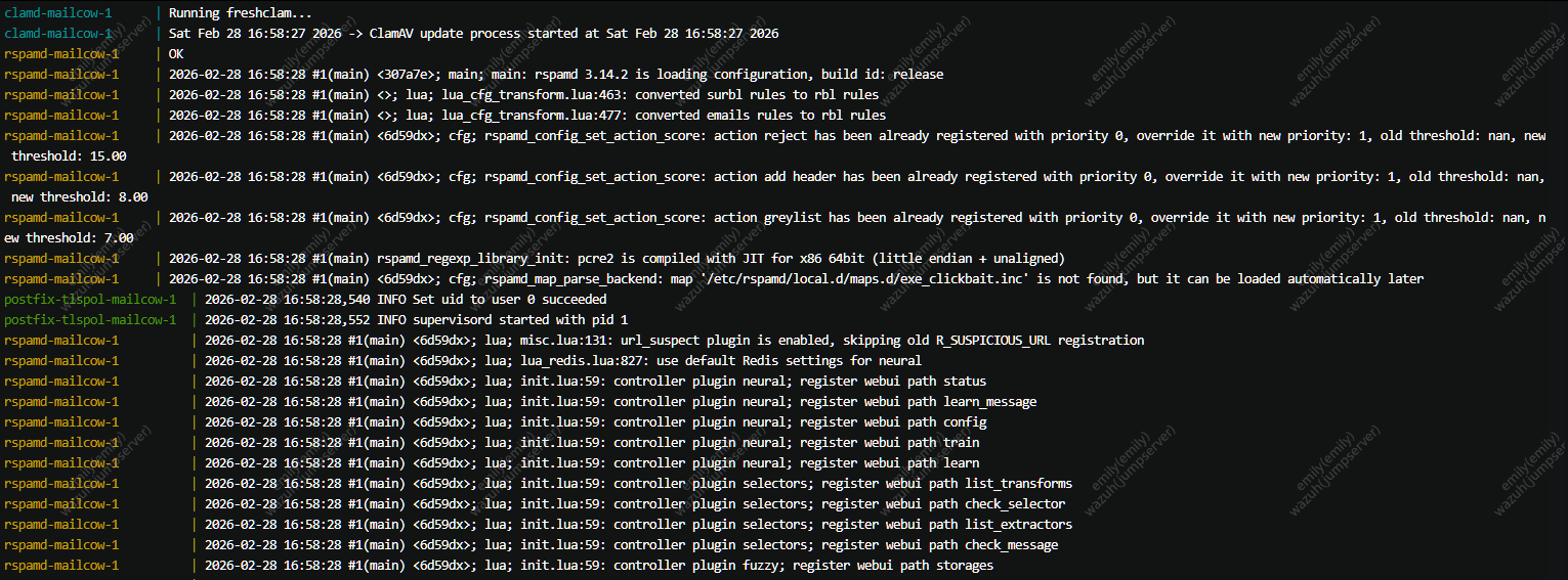 0c817432090d ghcr.io/mailcow/olefy:1.15 "python3 -u /app/ole…" 8 minutes ago Up 37 seconds mailcowdockerized-olefy-mailcow-1